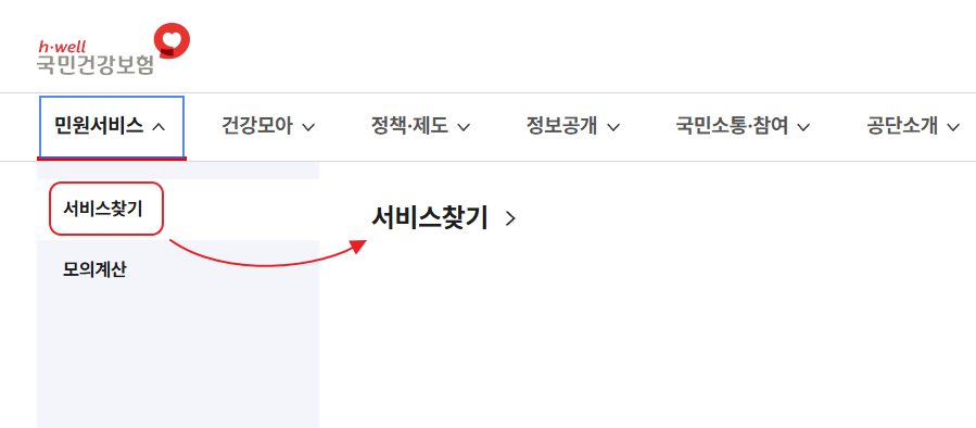 검색창에 "국민건강보험공단"을 입력하고 공식 홈페이지(https://www.nhis.or.kr)에 접속합니다.