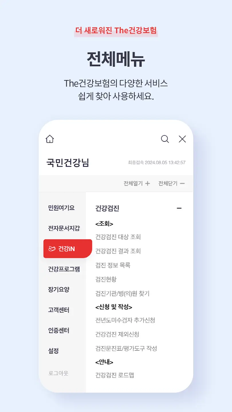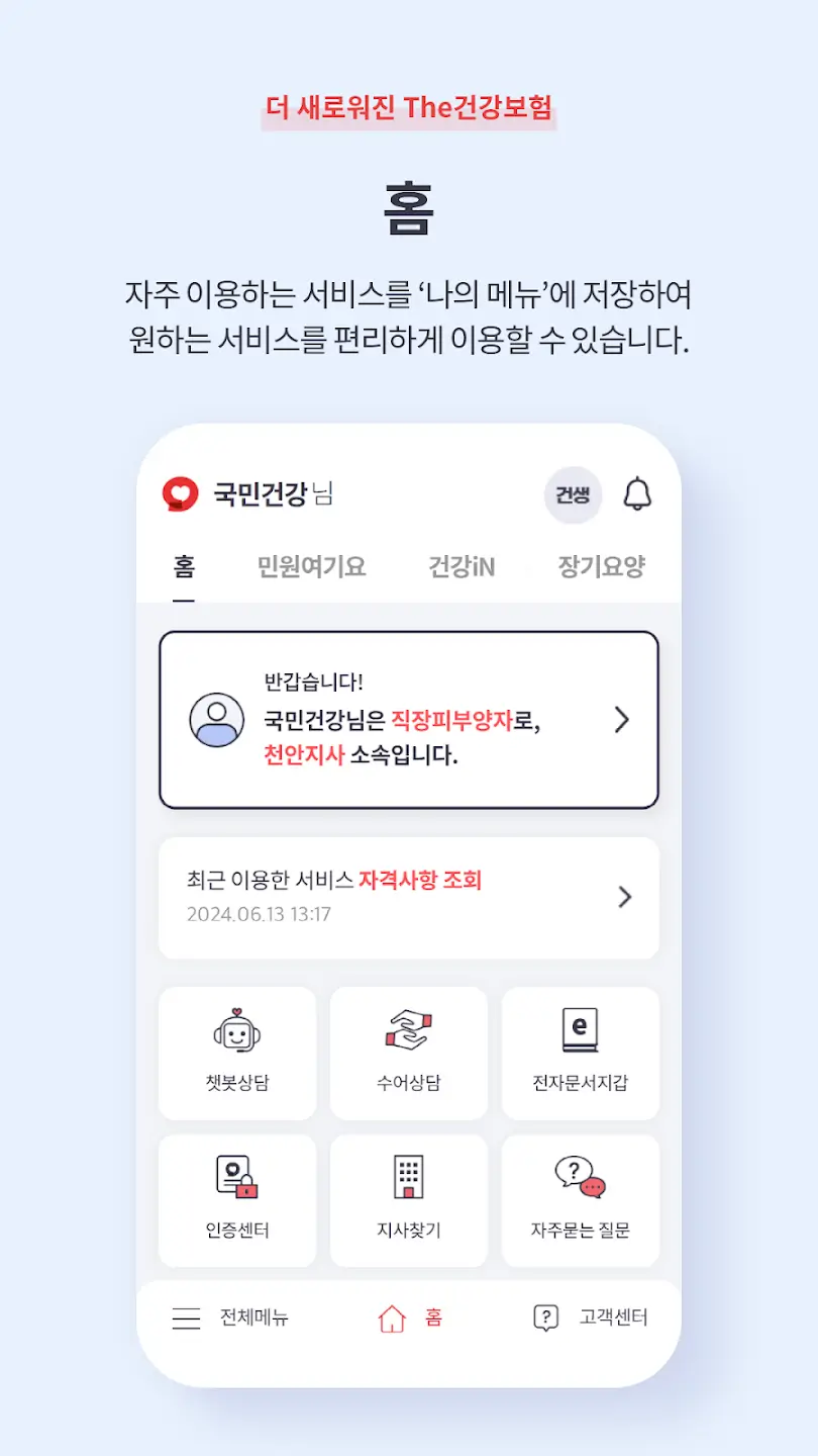 본인의 건강보험 자격 변동 이력을 확인합니다.