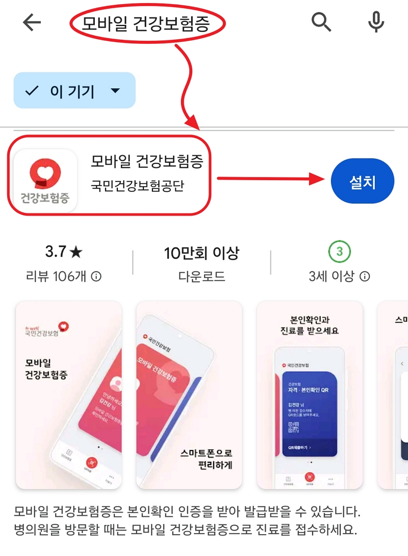 ※ 모바일 건강보험증 앱 설치 방법을 따라하시려면 다음 글을 확인하세요.