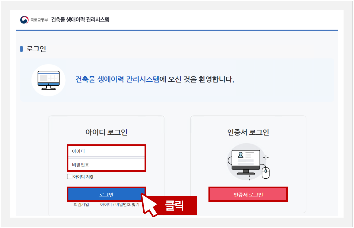 "건축물 생애이력 관리시스템 회원가입, 로그인 방법"