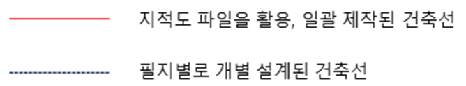 그동안 건축 설계 시 도해지역의 경우 도로중심선을 표준화하기 어렵고, 주관적인 해석에 따른 설계 반영으로 인접대지 간 건축선이 불일치하는 경우가 빈번하게 발생하고 있습니다. 또한 도로 폭이 제대로 확보되지 않아 측량 이후에도 민원 발생의 원인이 되고 있습니다.