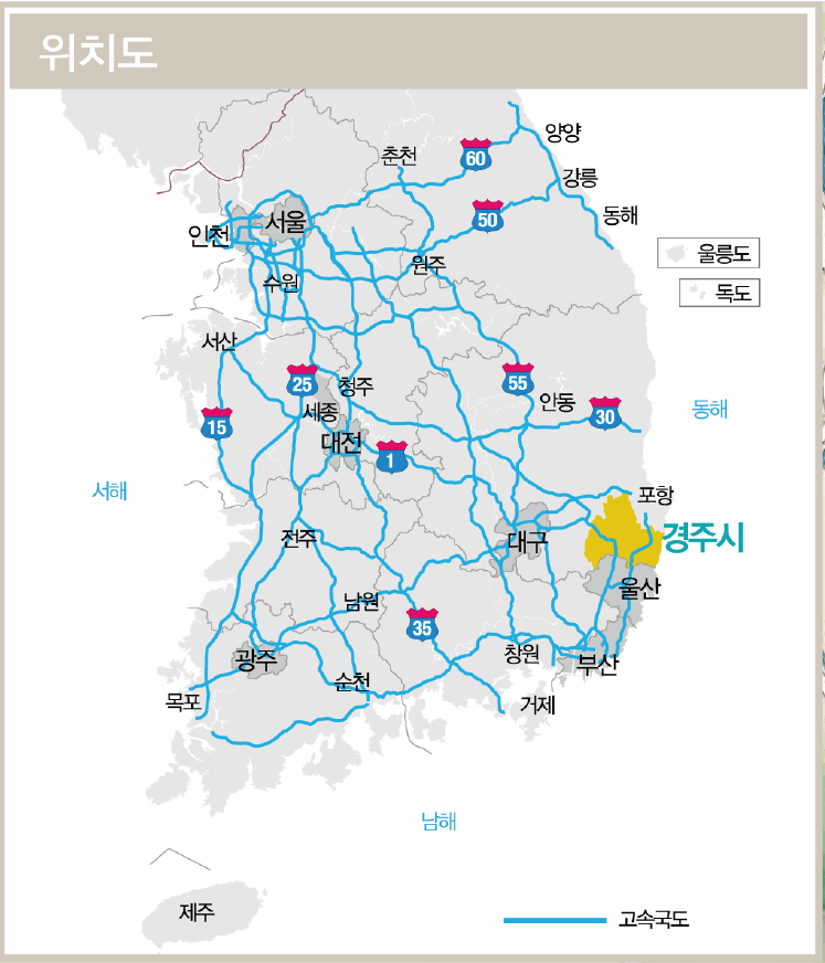 경북 경주는 울산과 포항 사이에 위치한 역사적인 도시입니다.
