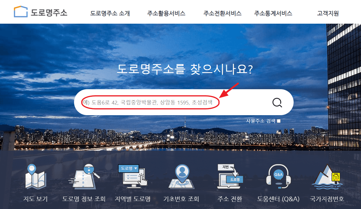 아래의 칸에 도로명 주소를 입력합니다.