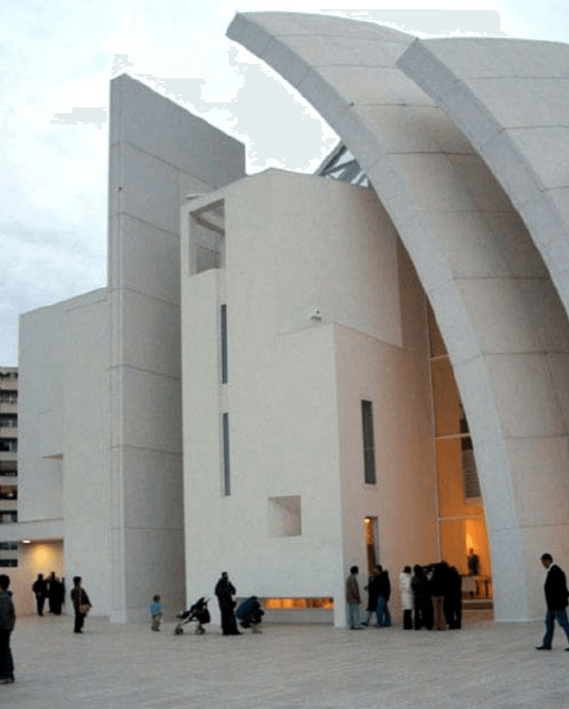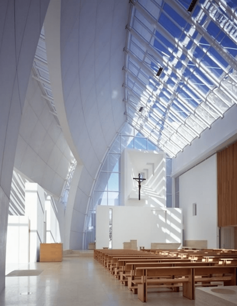 로마에 위치한 이 은총의 교회(The Jubilee Church)는 기하학적인 형태와 빛의 활용으로 유명합니다. 그리고 건축물 외관의 세련된 디자인과 현대적인 감각이 돋보입니다.