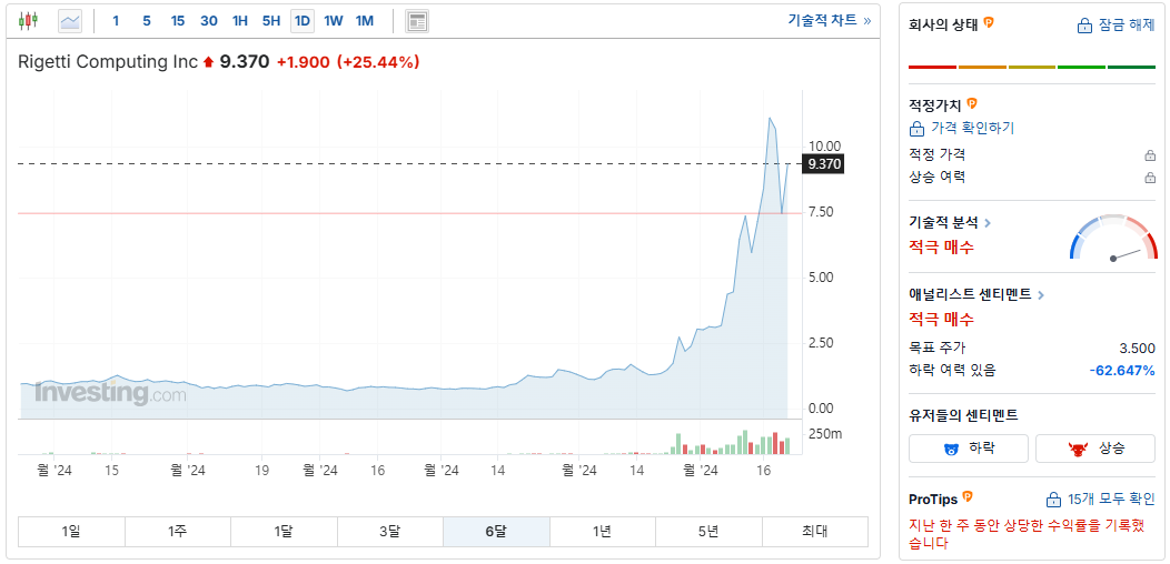 리게티 컴퓨팅은 슈퍼컨덕팅 큐비트 기술을 기반으로 한 양자 컴퓨터를 개발하는 기업입니다. 클라우드 플랫폼을 통해 양자 컴퓨팅 서비스를 제공하며, 연구 기관 및 기업과의 협력을 통해 기술 개발에 박차를 가하고 있습니다. 최근 주가가 급상승세를 보이고 있습니다.
