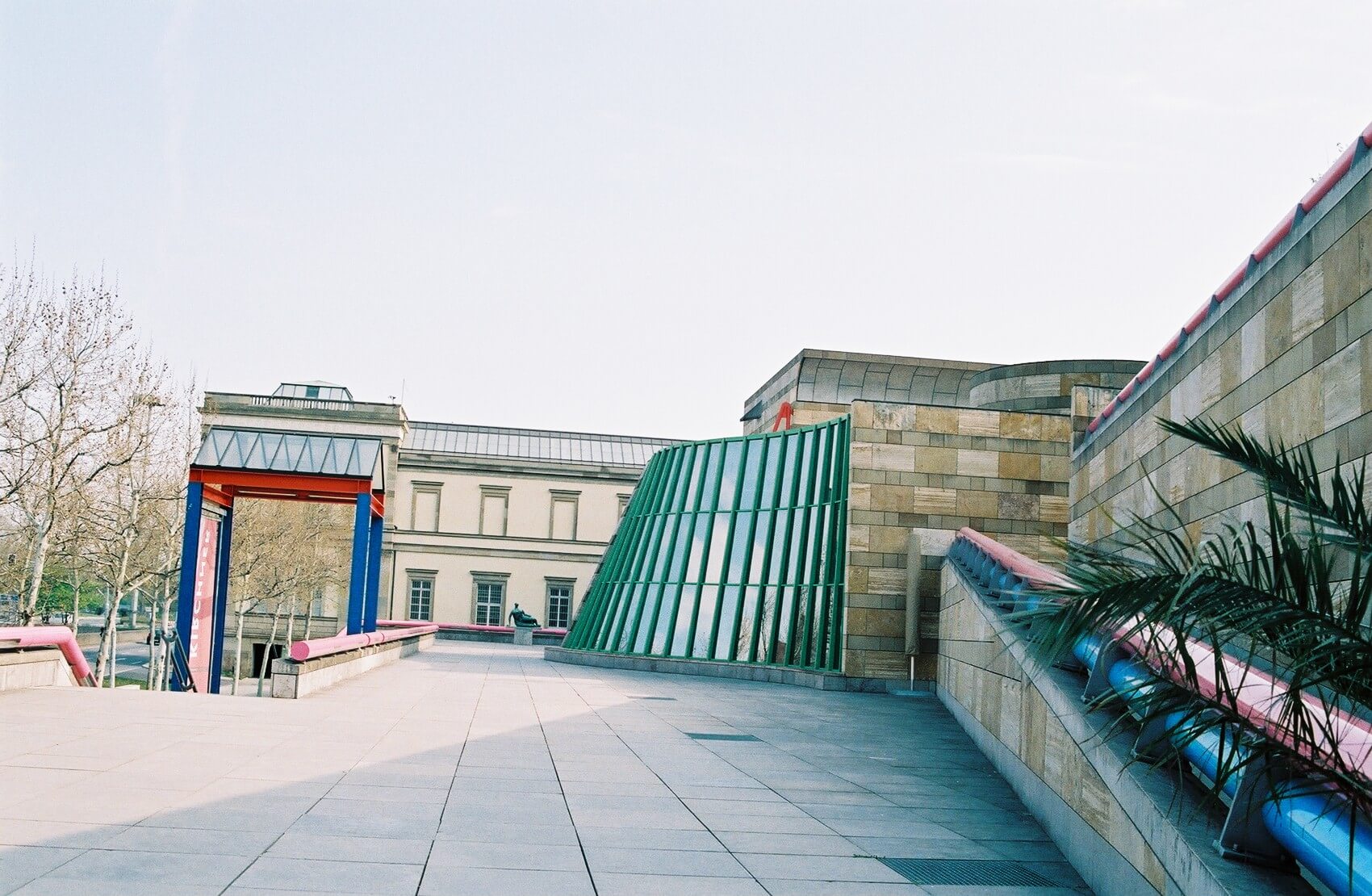 독일 슈투트가르트 중심부에 있는 이 미술관은 제임스 스터링의 후기 작품에 속합니다. 이 건축물은 사암 계열의 석재와 강렬한 색채의 강철프레임이 대조적으로 적용된 디자인입니다. 원형 중정이 미술관 중심에 있고, 신고전주의를 표방하는 건축물입니다.