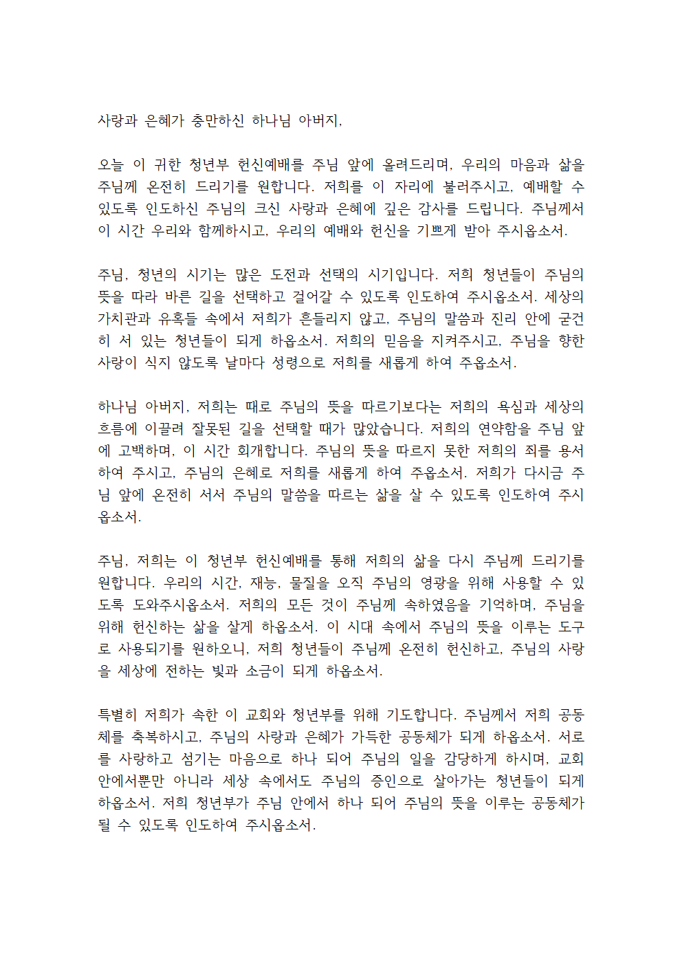 청년부 헌신예배 기도문