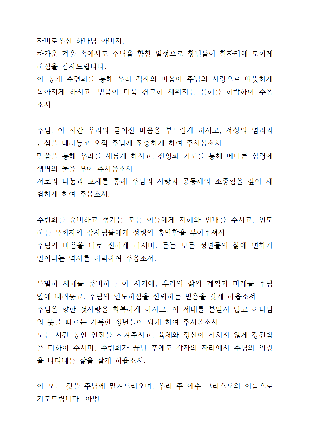 청년부 동계수련회 기도문