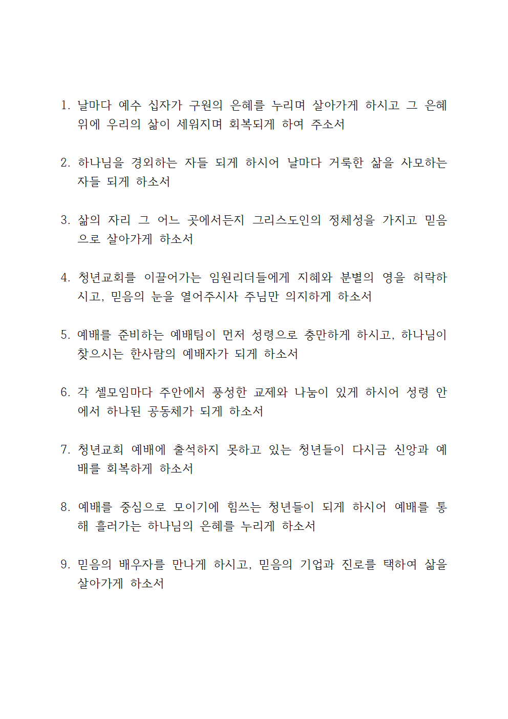 청년부 기도제목