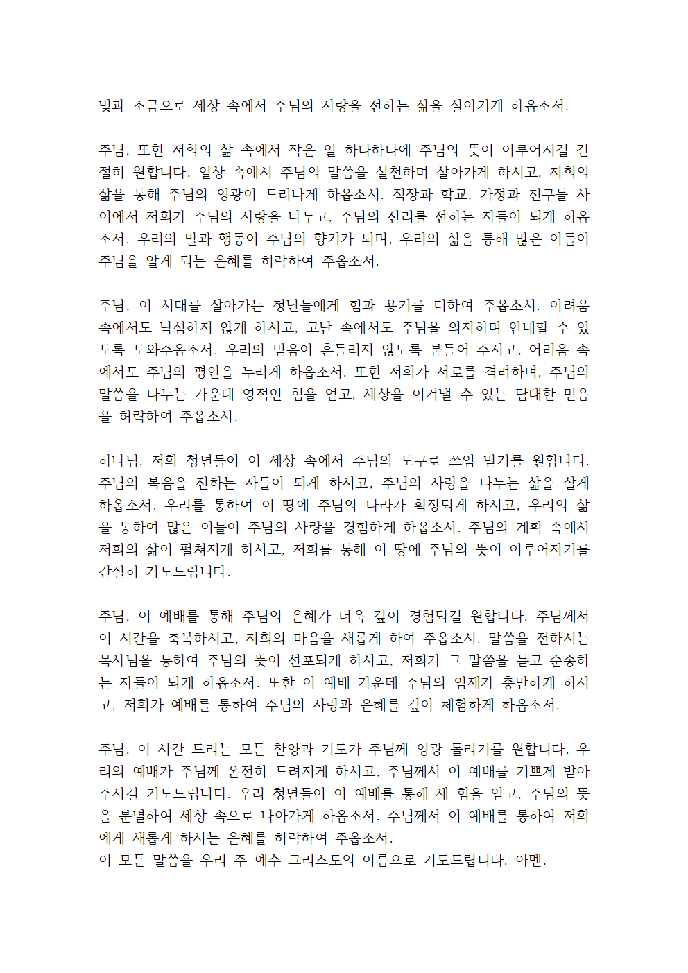 청년예배 기도문