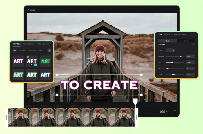 TikTok, 인스타그램 등 소셜 미디어와 높은 호환성. 인터페이스가 직관적이고 쉽게 사용 가능. 배경 제거, 속도 조절, 자동 캡션 등 강력한 기능들이 제공됨.