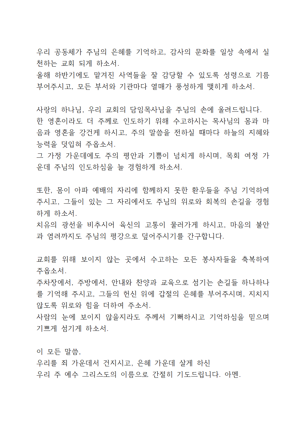 7월 첫째 주 대표기도문 (hwp 파일)